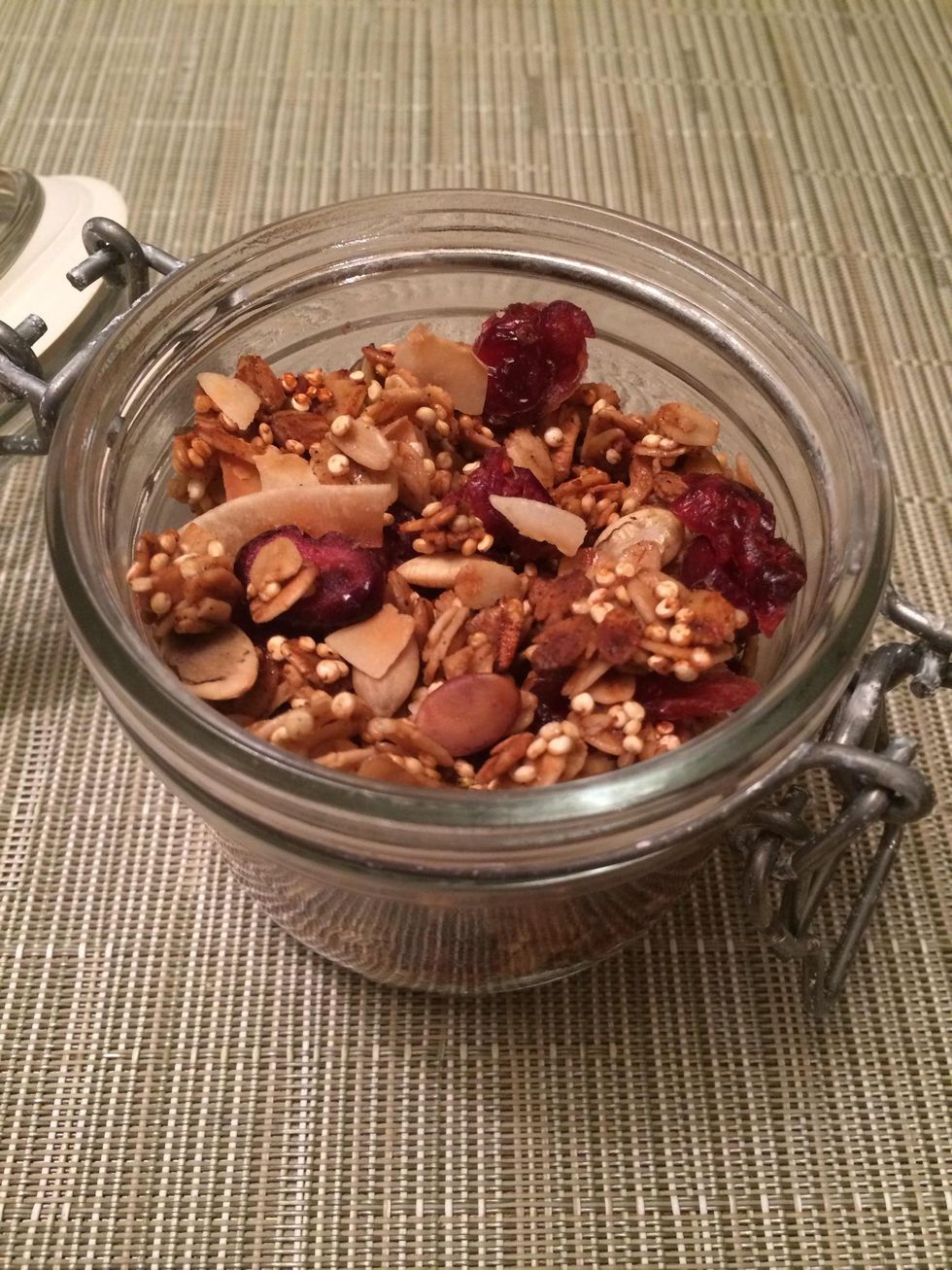 Quinoa adds some extra crunch and protein to this granola recipe.