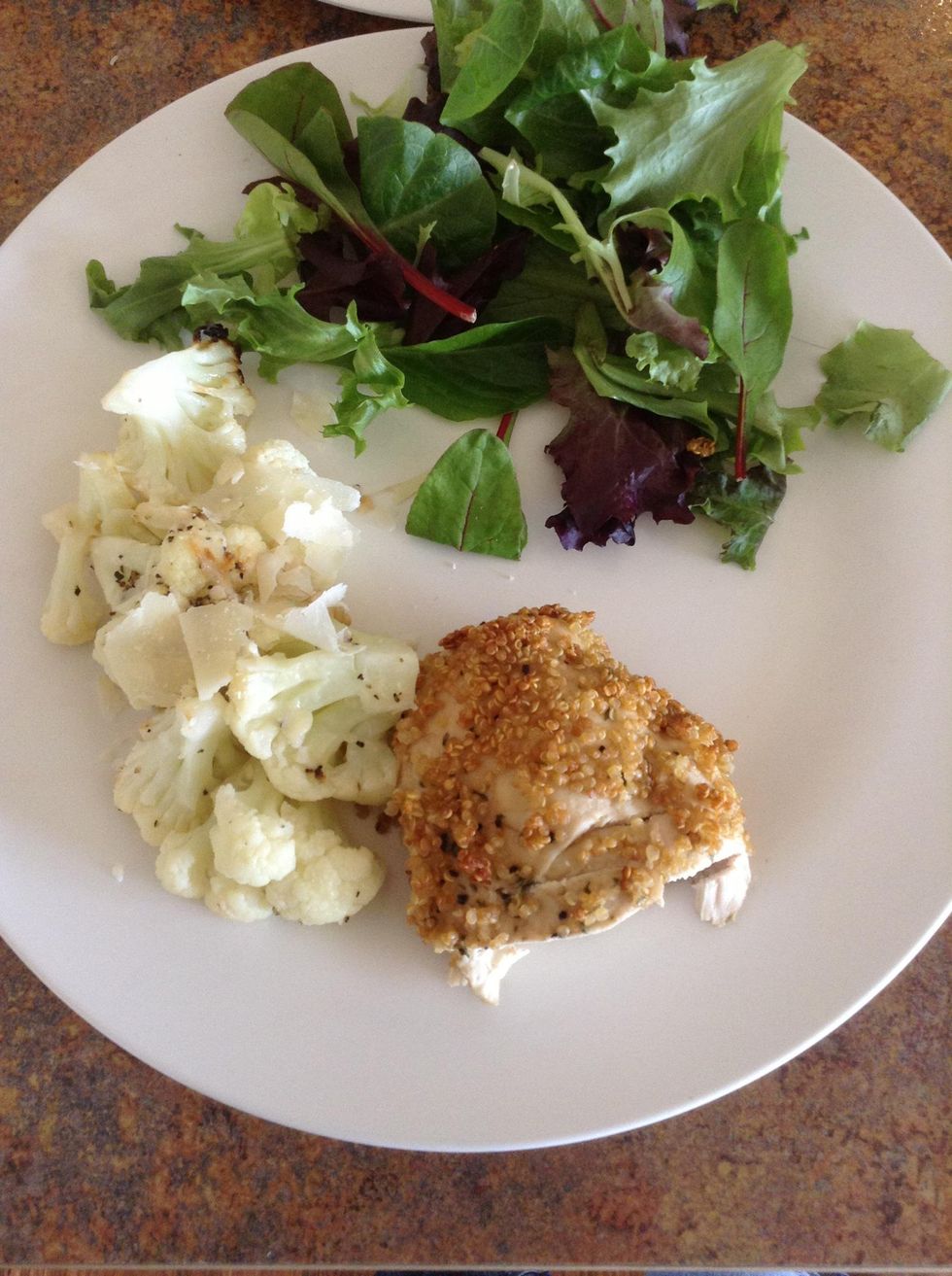 Make Quinoa Crusted Chicken and Baked Cauliflower