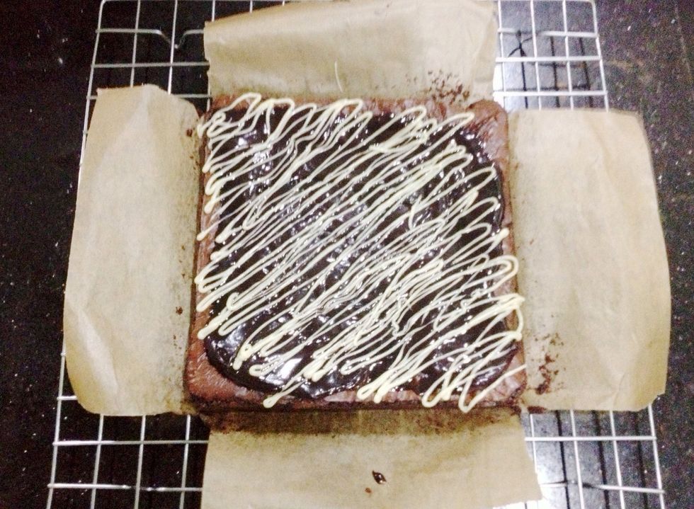 But if you still wanna make chocolate ganache, check out my guide "How to Make Hot Chocolate Cake" and there are steps to make ganache. :) back to the brownie, smooth out the chocolate! [4th choc]
