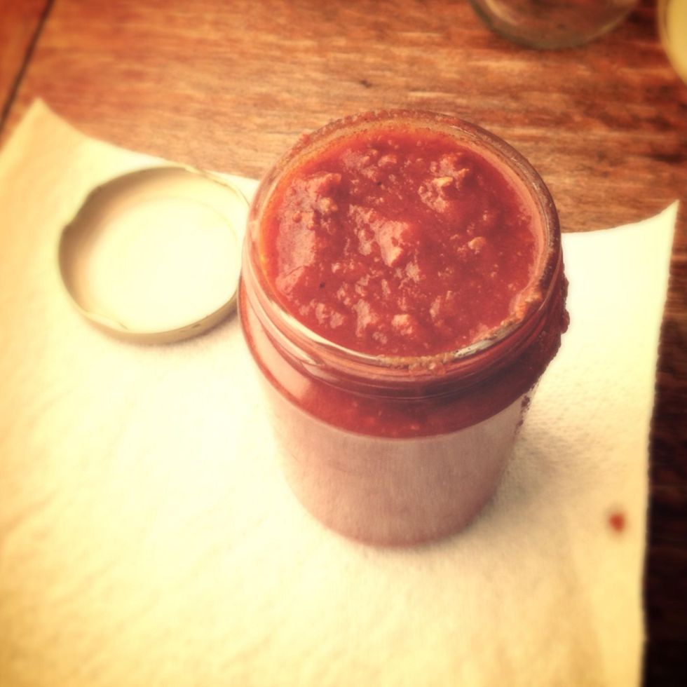 The latter requires the jar to be very clean and dry, fill it up to the top with the hot sauce, close it tightly with the lid and let cool down upside down. The sauce cooling will air seal the jar.