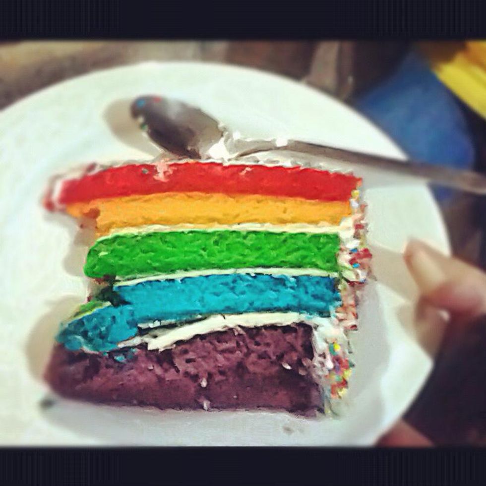 This is my lovely part ❤😍👌. Then, After you get the color that you want, pour the mixture in the springform pan and bake it in the oven based on the instructions in the box.