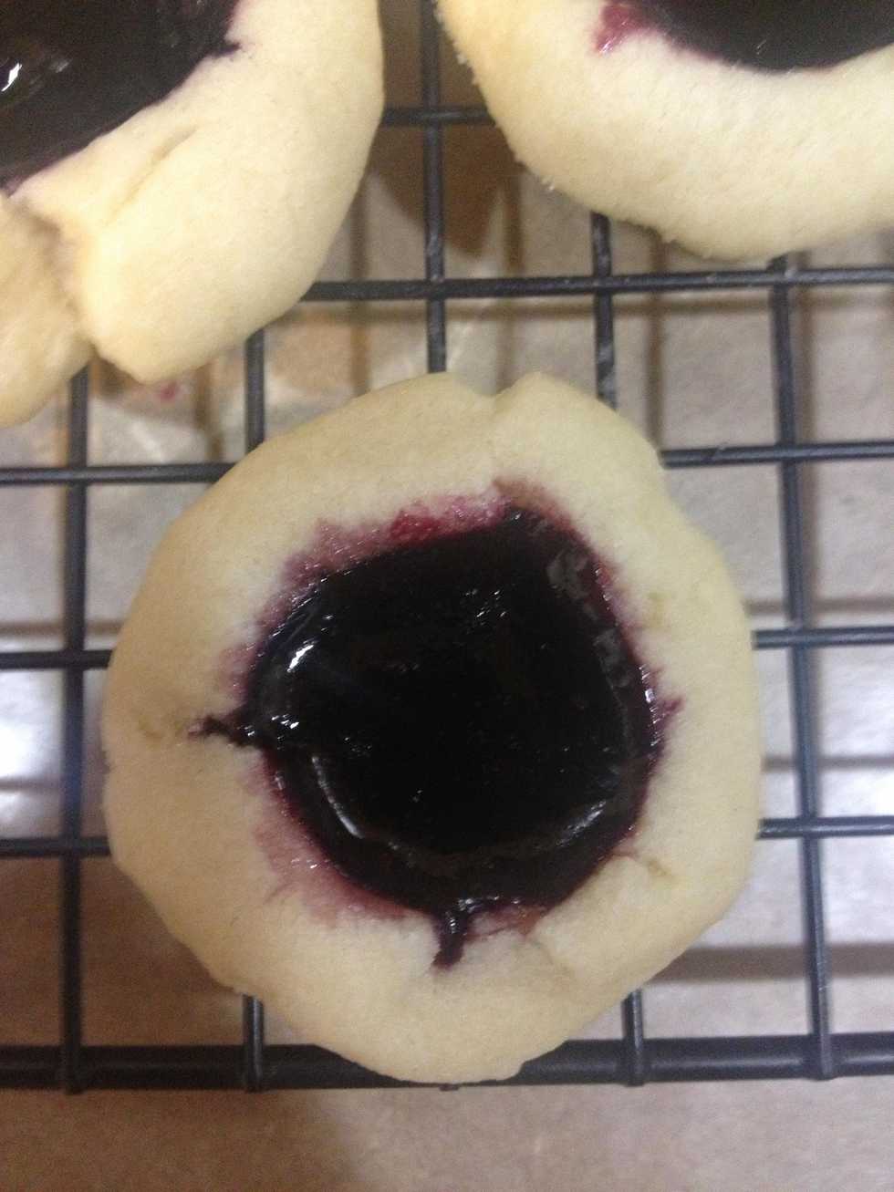 Add about 1/4 to 1/2 tsp of the jam to the well on each cookie