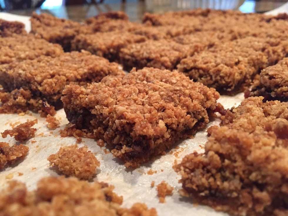 In a food processor, add: •1 1/2 cups gf flour. (I use Pamela's brand, it bakes perfectly) •1 cup dark brown sugar •1 1/4 c gf oats Pulse this just to incorporate
