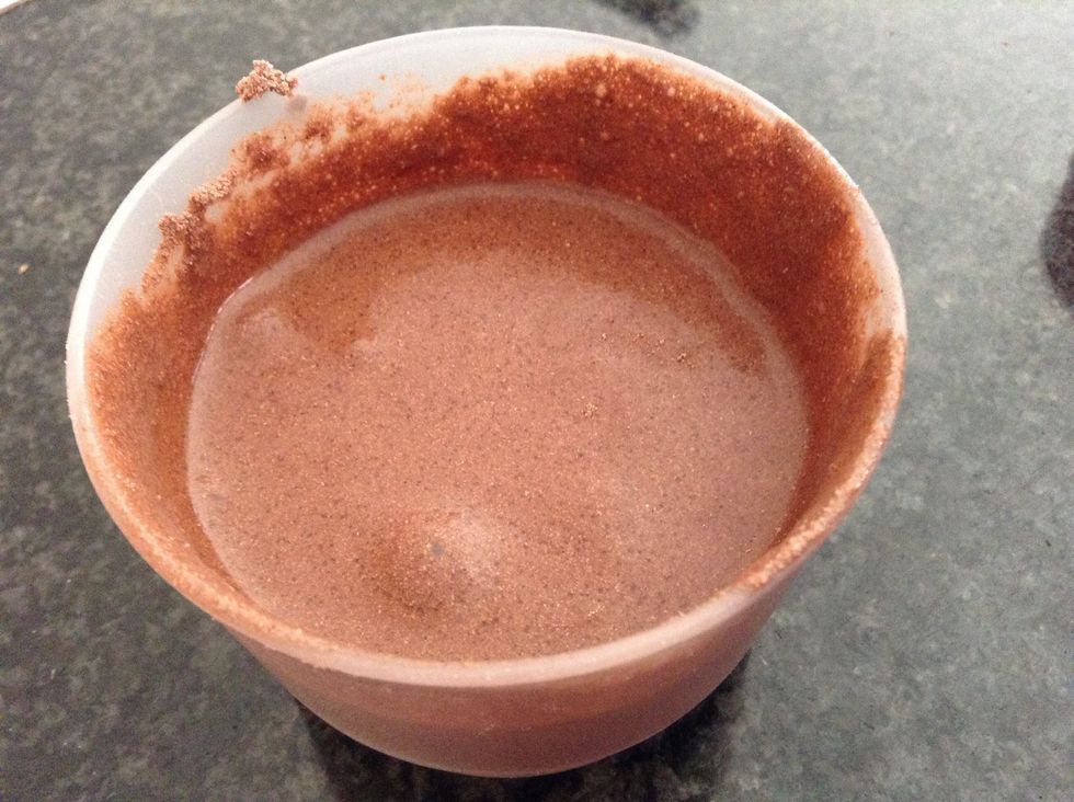Before it looks like this, it will look dry and lumpy. That's good! Now, stir it really really fast and it will quickly look like the finished product. Eat it fast or someone else will steal it.