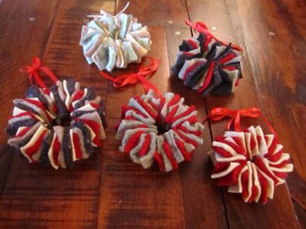 32 squares will make a wreath about 4 inches in diameter. Twist the ends of wire to secure them, snip off the extra wire, tie some ribbon around the wire and ta-da!