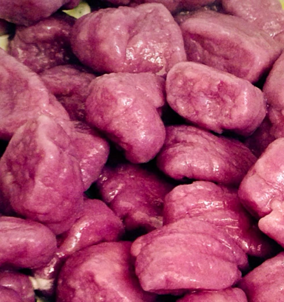 This is how they will look once cooked, the nice purple color stands out and will give color to your dish! Use a light sauce with these, so that you can still appreciate the cabbage taste! Enjoy!