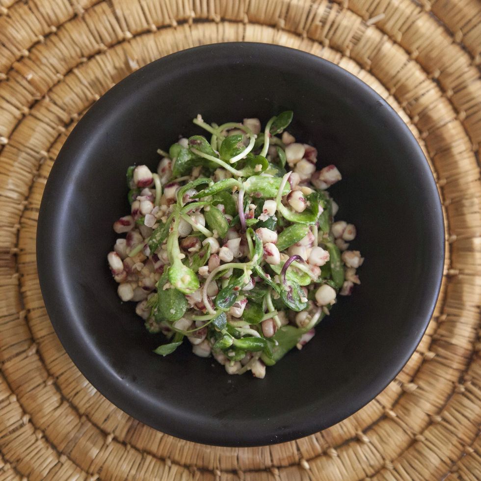 Make Red Corn & Sprout Salad Peanut Chili Dressing