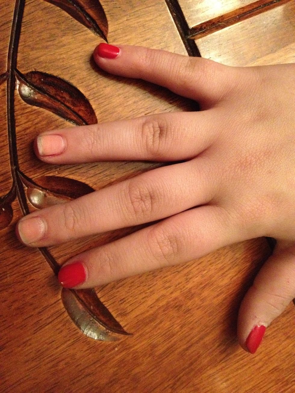 Add a red heart on the midlle finger, a top coat and youre done ;)