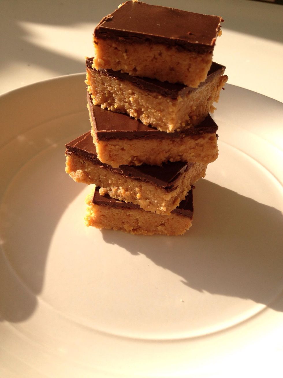 Spread into an ungreased cookie sheet. Wiggle pan until the peanut butter mixture is level. Put in fridge for about 20 minutes while you prepare the chocolate.