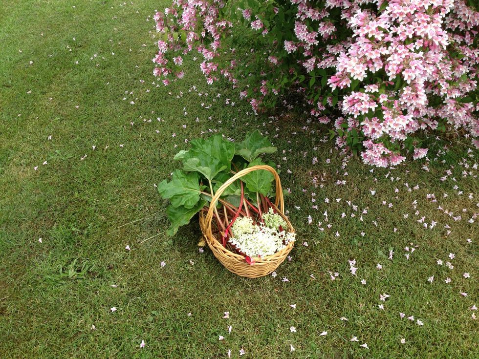 After 30 minutes the rhubarbs and the Elderflowers have released there flavour but are still whole so that the juice is relatively clear.