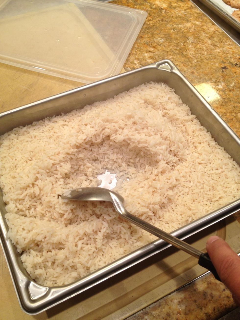 When you take the lid off you might notice that the rice is slightly al dente. There may also be a small amount of water still in the pan.