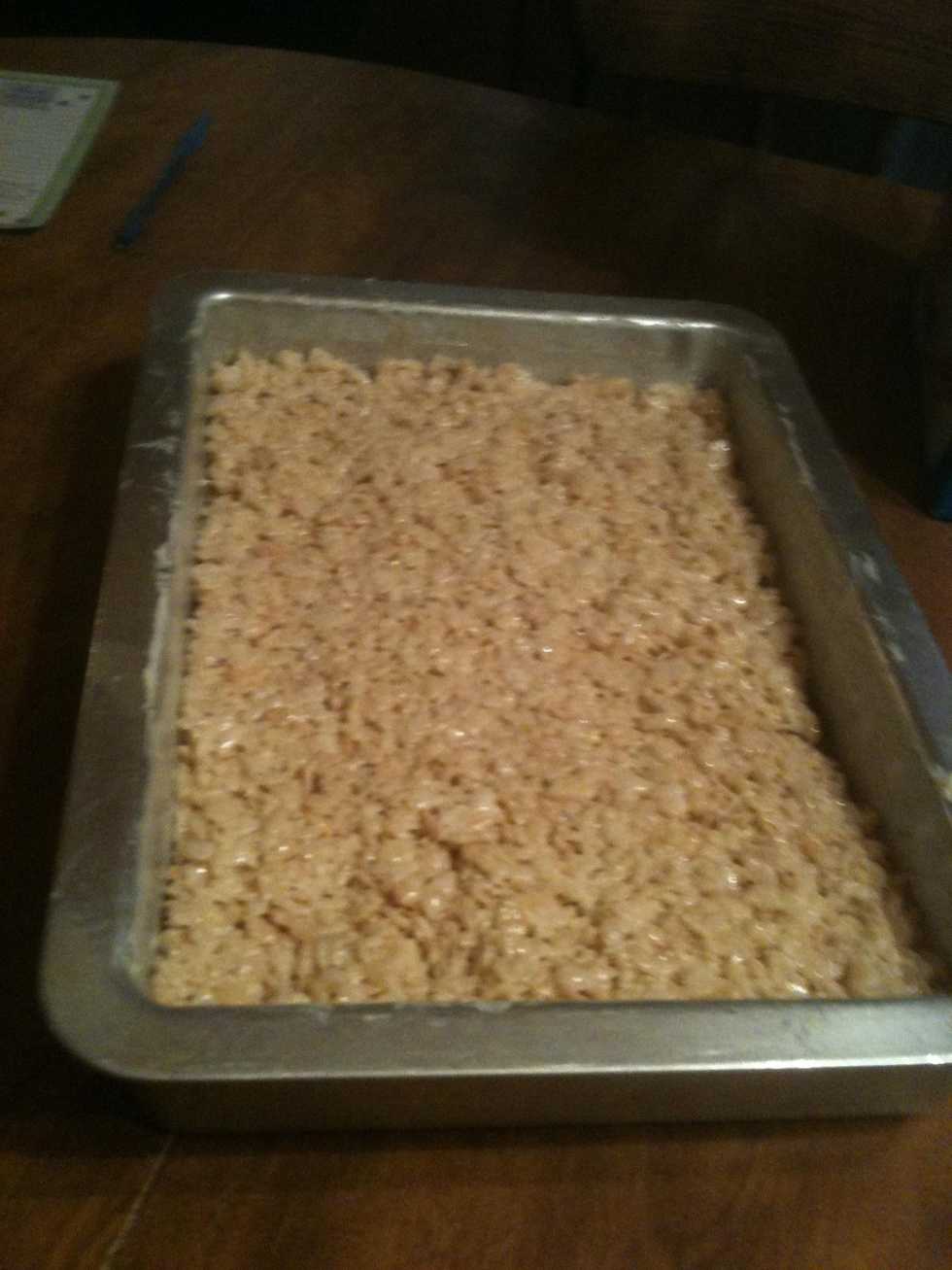 Mix the butter, marshmallows, and rice krispies together.