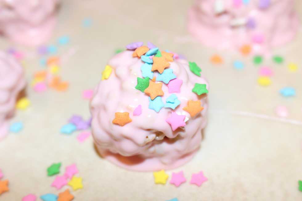 Place on Wax Paper and add Betty Crocker Star Sprinkles. Let Cool on the paper or place in the fridge.