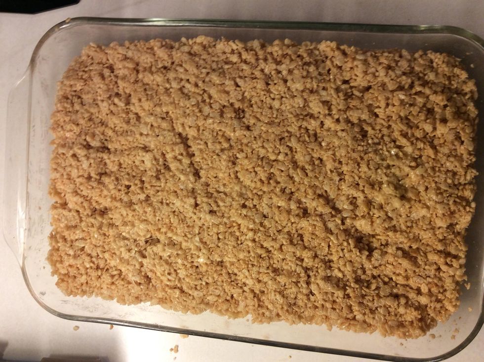 Add in the melted butter and marshmallow mixture and stir until they are together