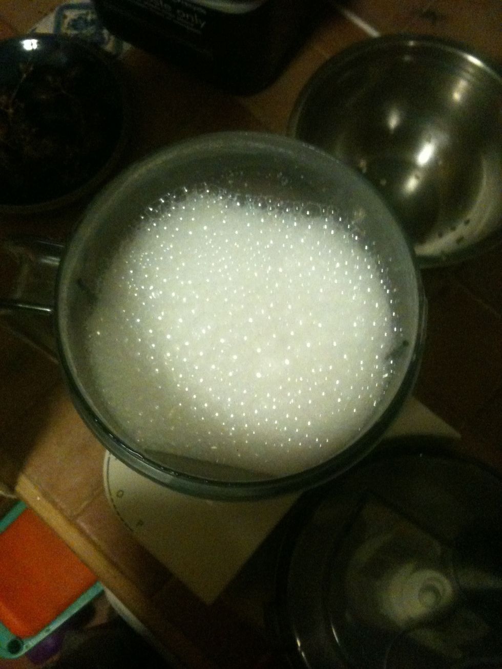 Put the rice and 3 cups of water (preferably filtered) into a blender. Whizz it up on the top setting for about 3 minutes, or until the rice grains have become very fine particles.