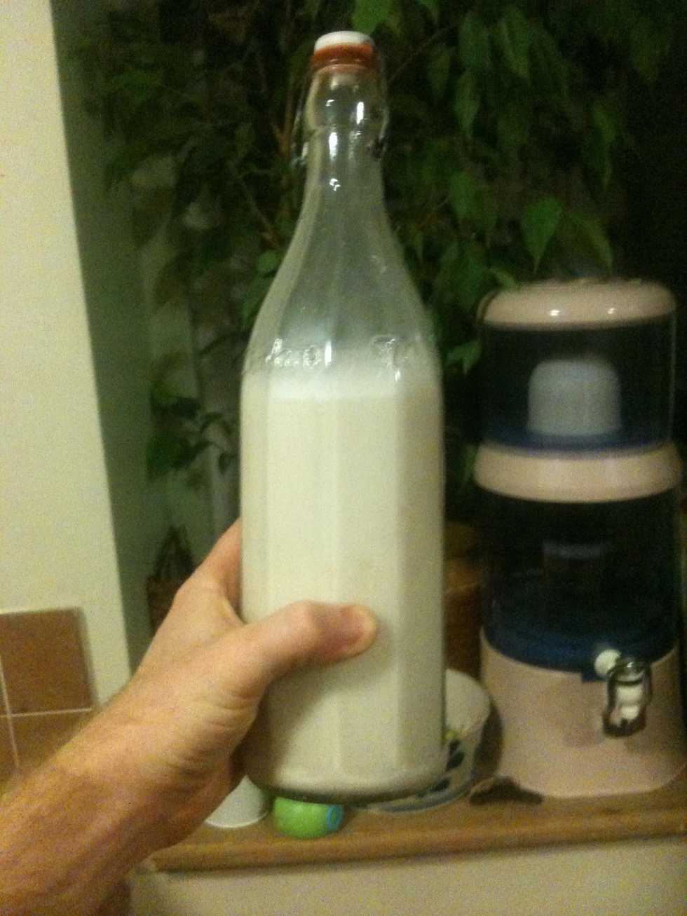 Give it a good shake, and hey presto - home made rice milk. It keeps in the fridge for about a week and needs a good shake every time you use it. Any ideas of what to do with the rice goo welcome!