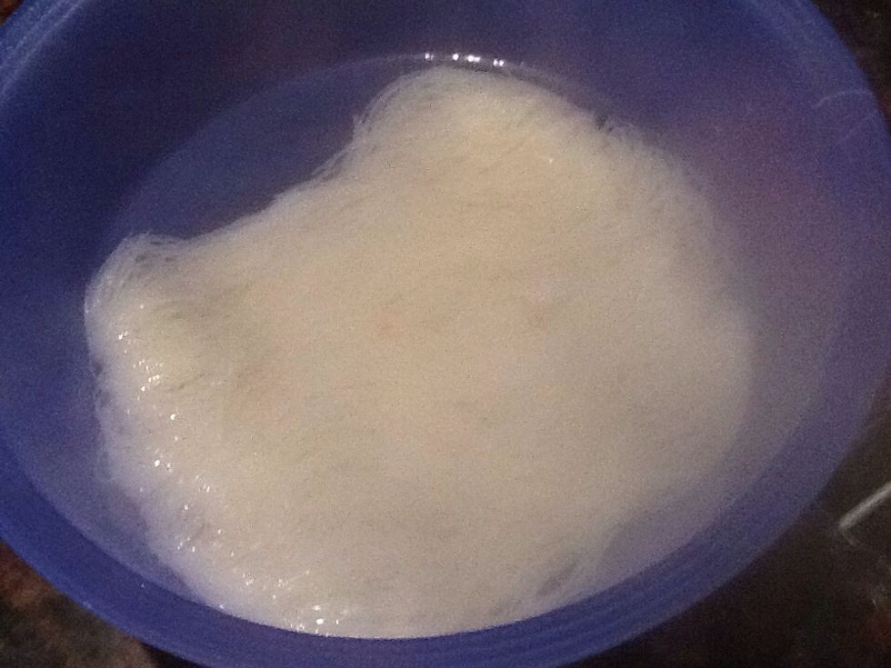 The first step is to wet the sheet of rice paper with warm water ( do not over - wet) , place on a moist tea towel , wait till soft and pliable