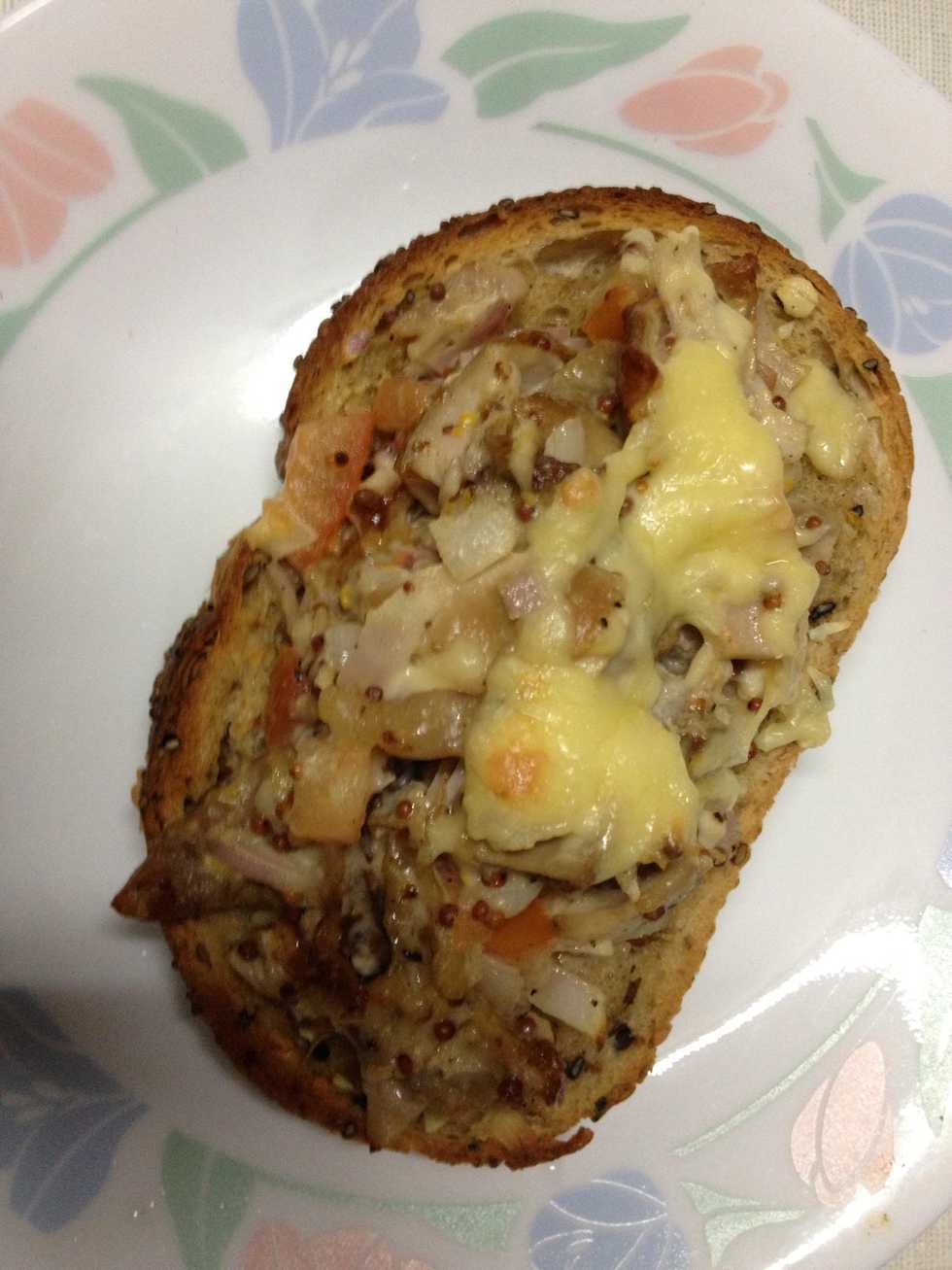 Remove lightly toasted garlic bread from oven and put chicken filling on the top as well as some cheese. Return to oven and toast till cheese melts and browning