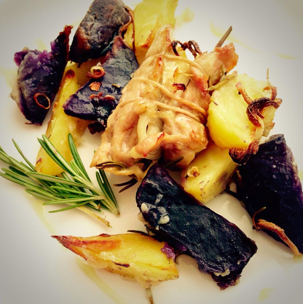Plate and garnish with some EVOO and fresh rosemary. Remember not to eat the twine.