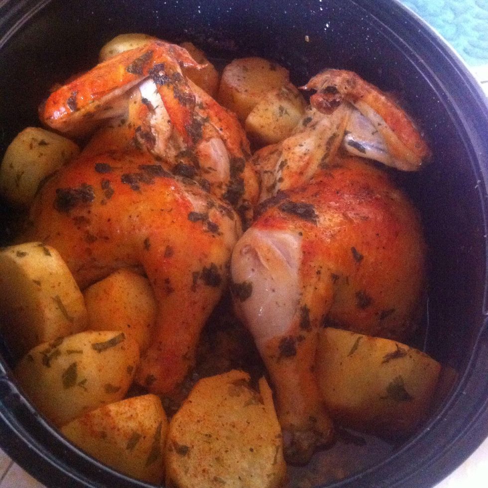 I combined all ingredients ... And marinate the chicken and potatoes .. Chicken was cut into half ..