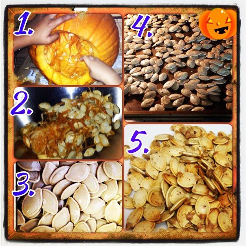 Set oven to 400 and roast till lightly brown and toasty. Clean up your mess while the seeds are cooking. Just wrap it all up in the plastic and dump... Easy clean up!