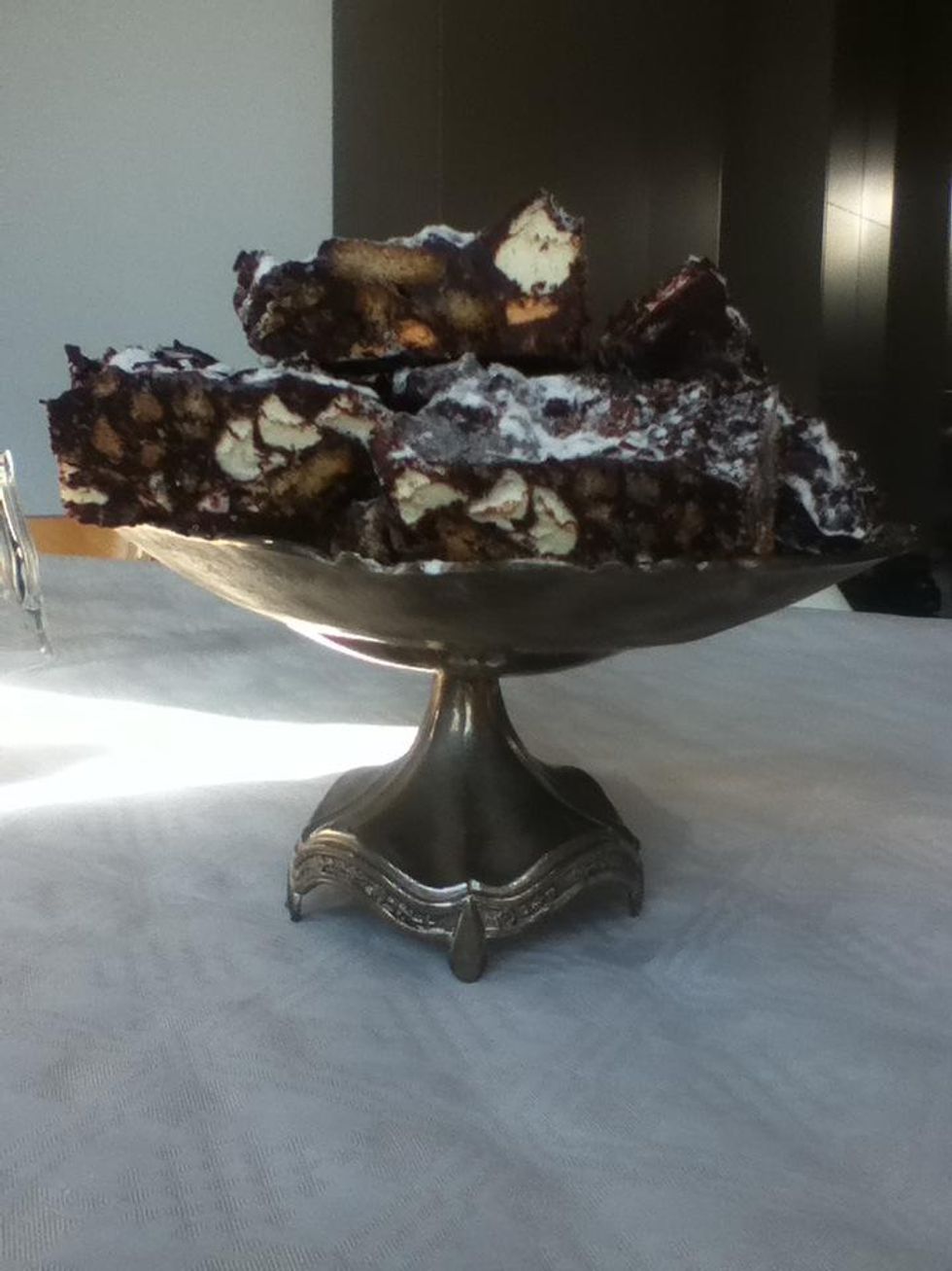 Melt the butter........ The chocolate and golden syrup in a heavy-based saucepanAdd the marshmallowsCrumble the biscuits in to crumbs and piecesPut the biscuits in the saucepanPut it in the refrigeraterEnjoy!