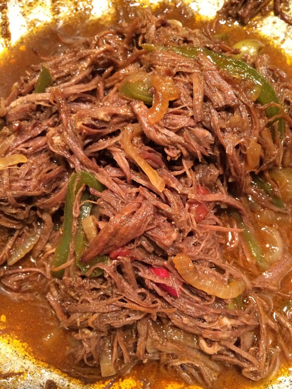 How to make ropa vieja/shredded flank steak in tom. sauce
