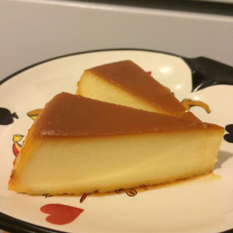 Once you cut a slice, you'll see the creaminess of the flan. Enjoy!