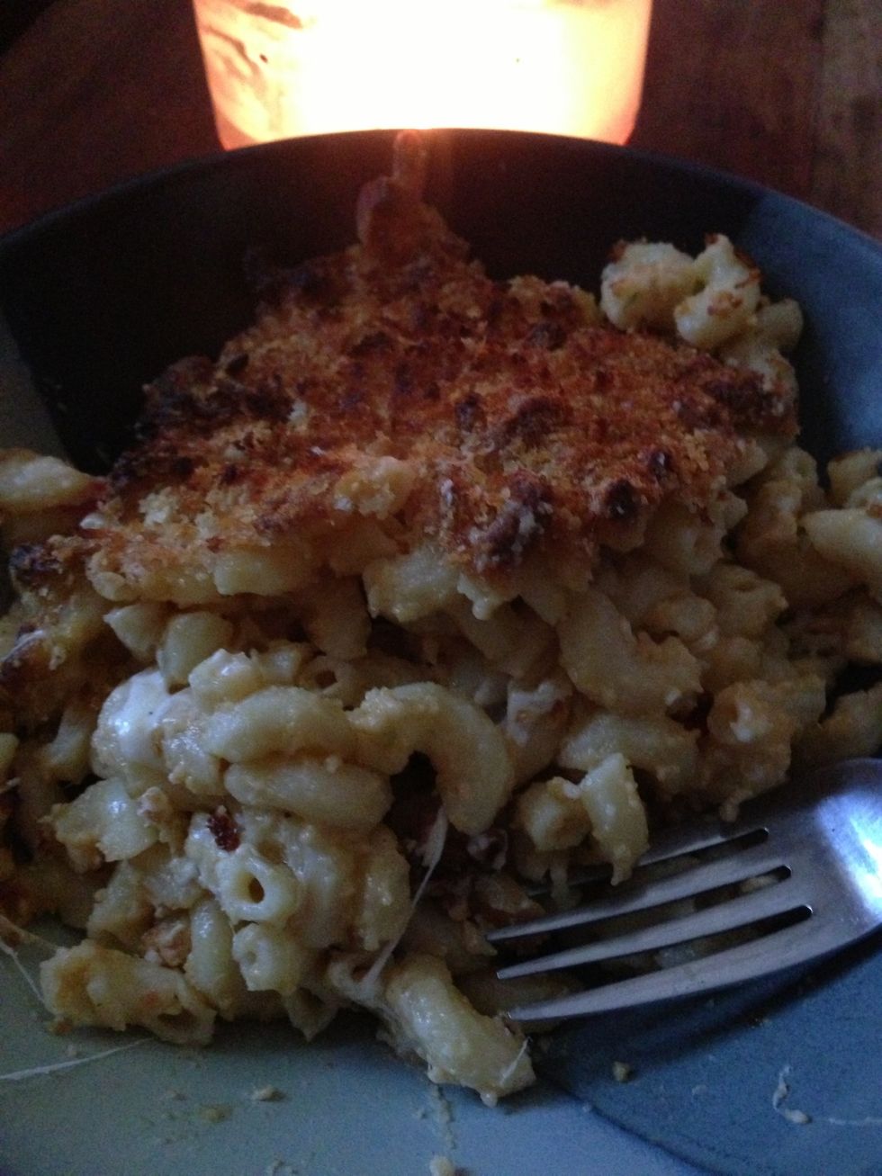 Sprinkle 1/4 cup Parmesan and 1/4 cup Panko on top.