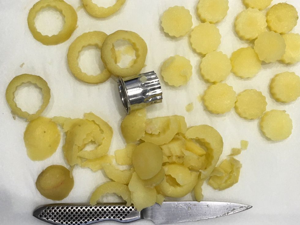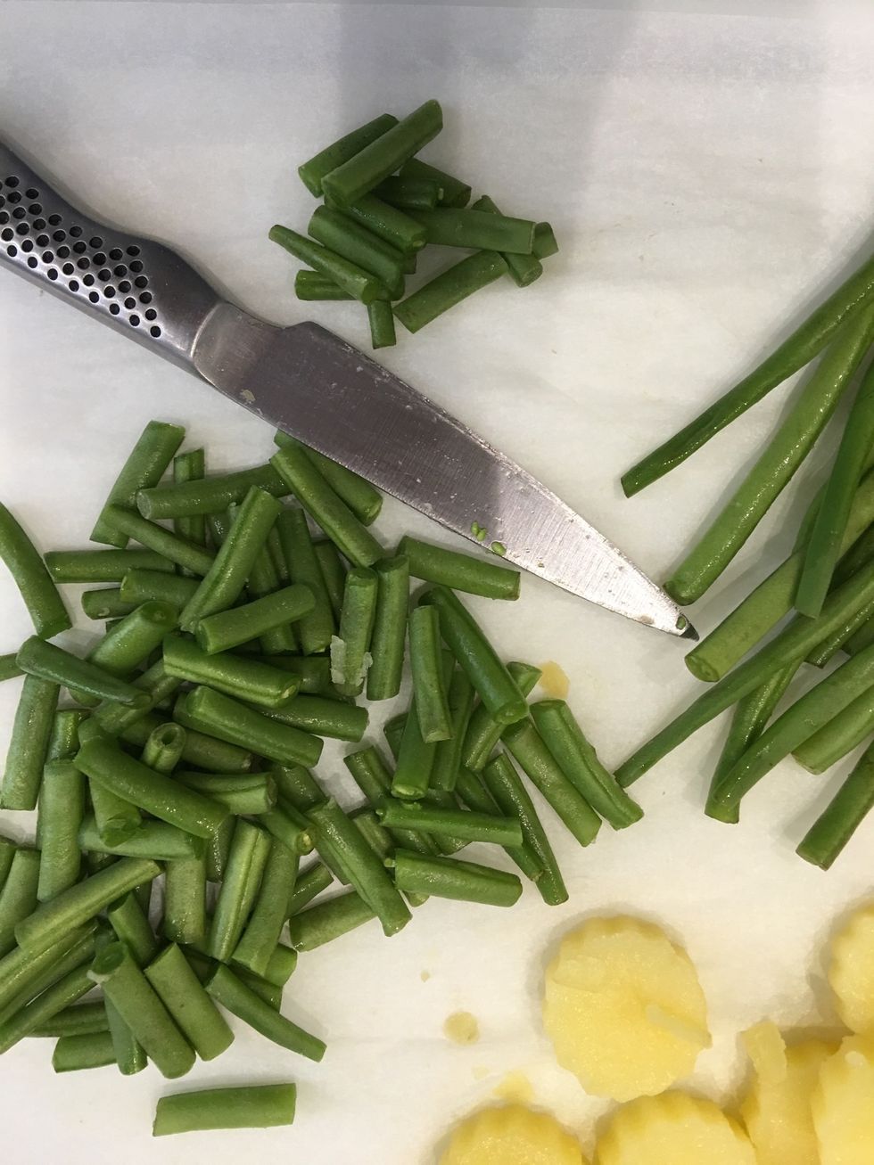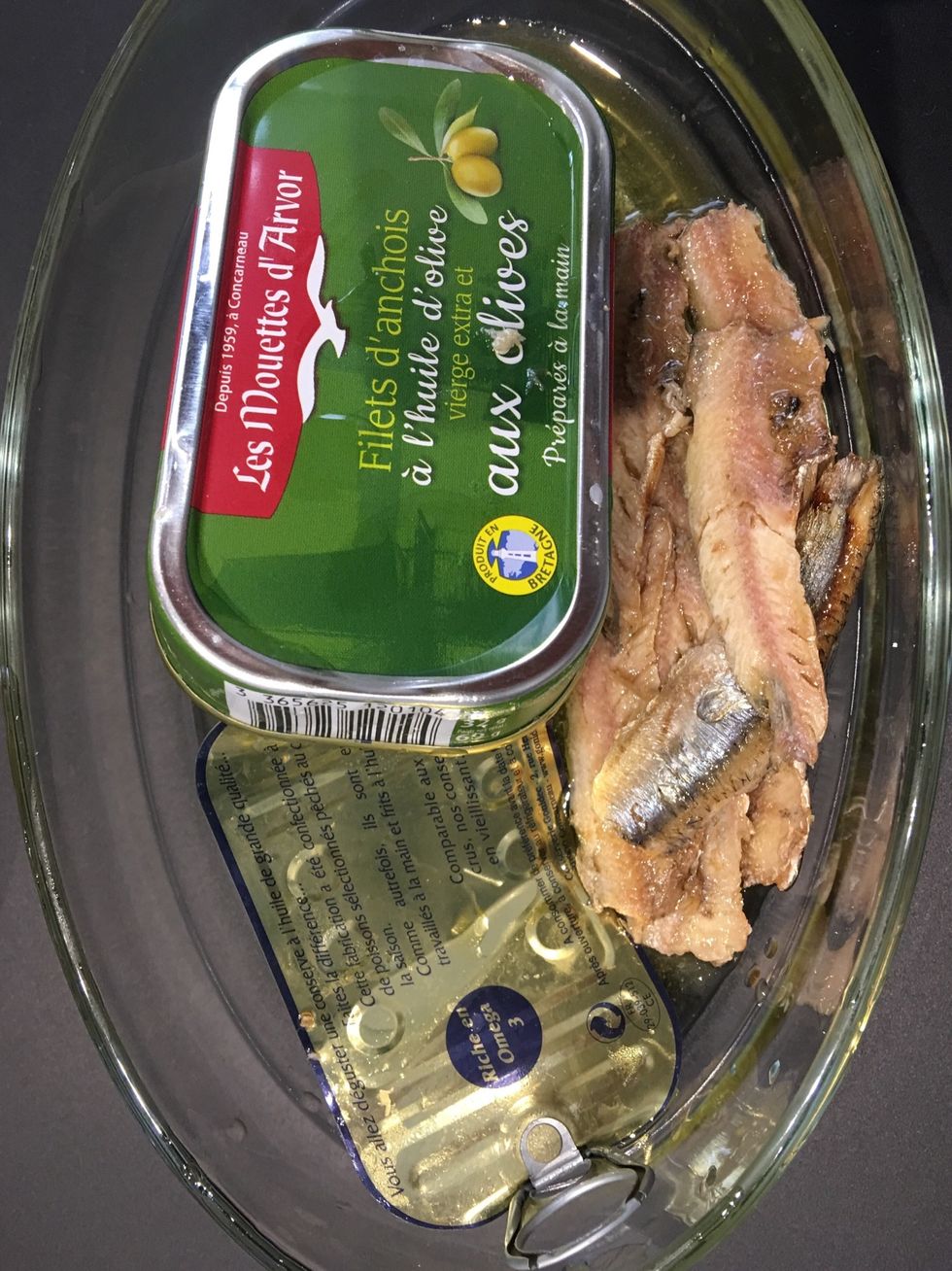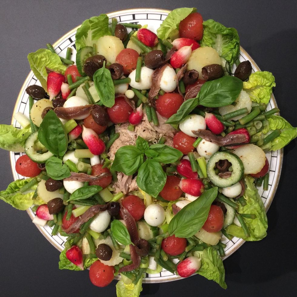 Flake the canned tuna and season with some vinaigrette. Put in the middle. Then arrange all the ingredients as desired