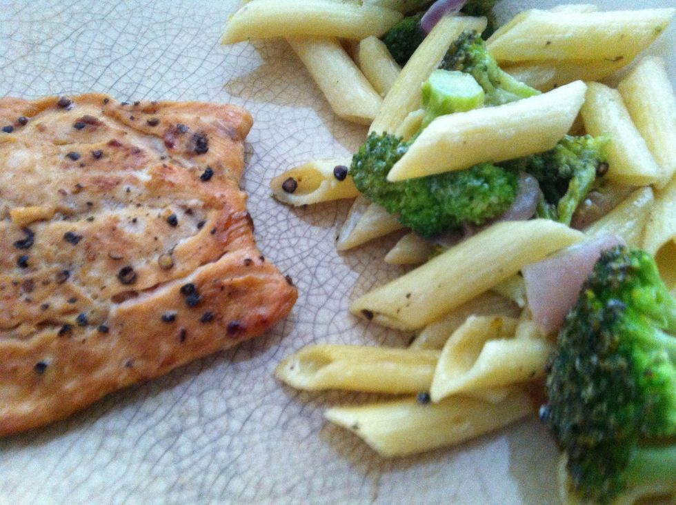 It's ready to eat!!! Here you can see it with veggie pasta