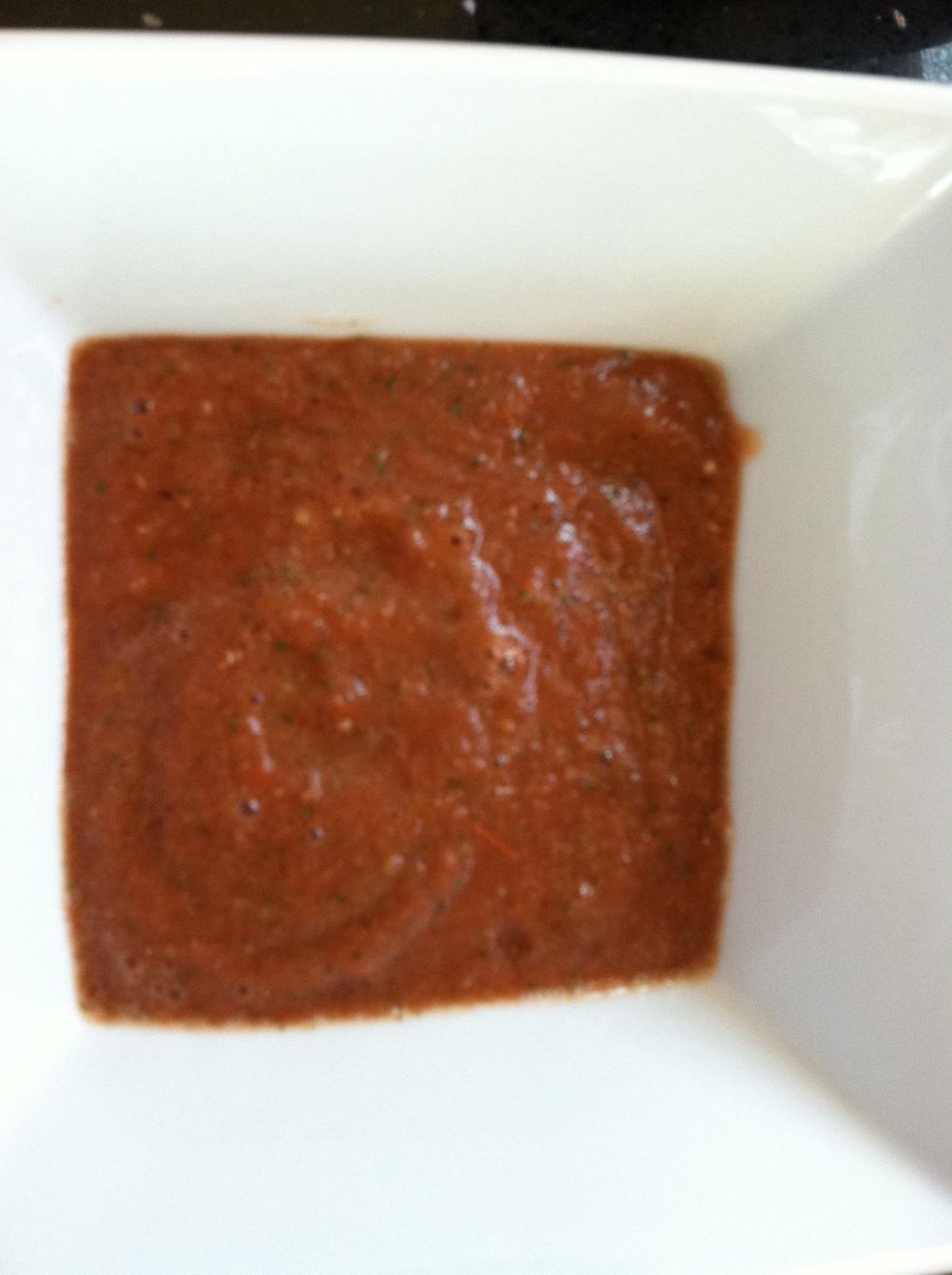 Remove core from top of cooled tomatoes, then add to blender. Add all ingredients to blender. Add the lid to the blender and hit the purée button.