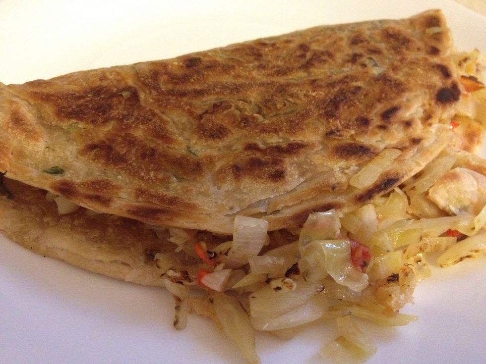 I serve mine pan fried inside onion roti... But the mixture is also great in a pita.