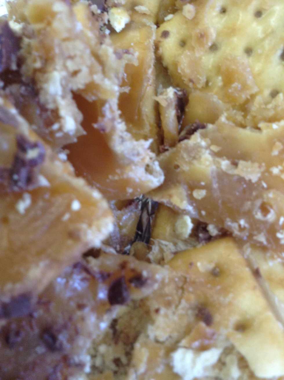 Put the pan with the crackers and caramel in the 350 degree oven for 7 minutes.