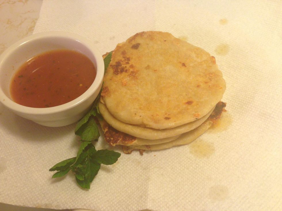 Semi-traditional Salvadorian Pupusas, basically cheese (or anything u want like bacon) stuffed tortillas! Staple food of El Salvador. Warning: addicting