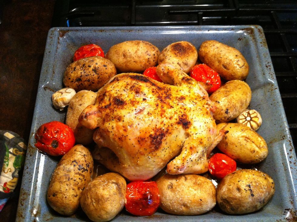 I had some tomatoes that the skin was starting to wrinkle but no bad spots. Just wash and dry and arrange whole. These will also give moisture to the chicken and give flavor. I'll toss these after.
