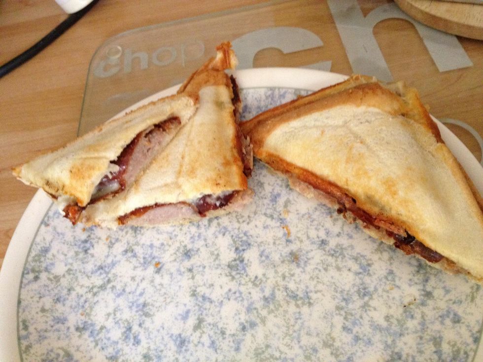 Lay the bread with the food on the toasted sandwich make first, then add the top slice covering it up. Close the sandwich toaster and wait for it to toast and melt the cheese.