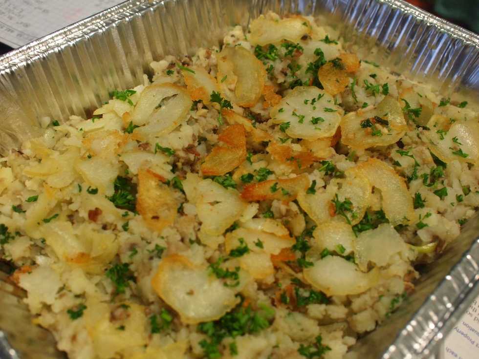 Après, peler les pommes des terres et couper en tranches