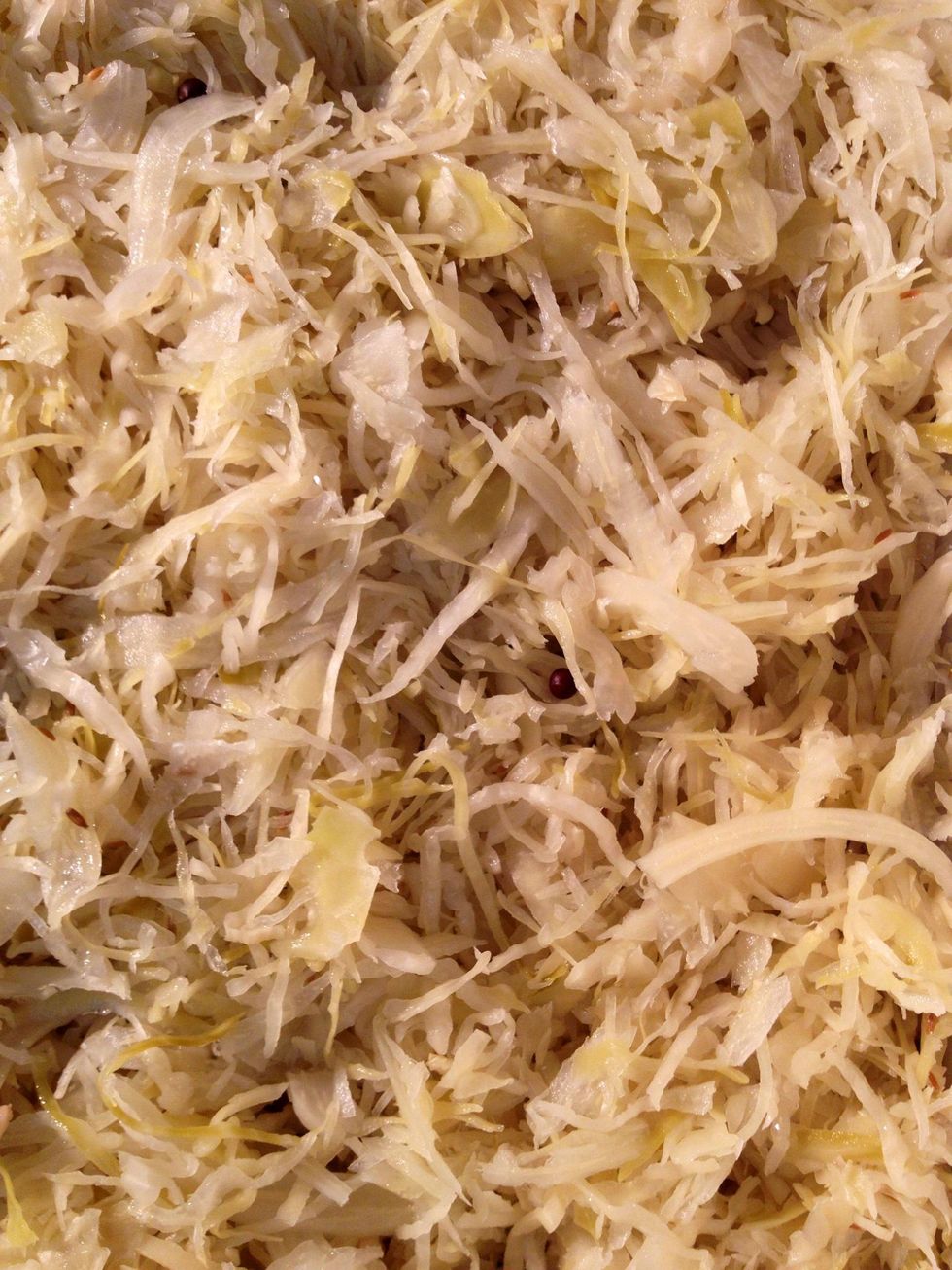 Rinse sauerkraut with water several times in squeezing between each wash, then do the cooking for a true Alsatian sauerkraut.