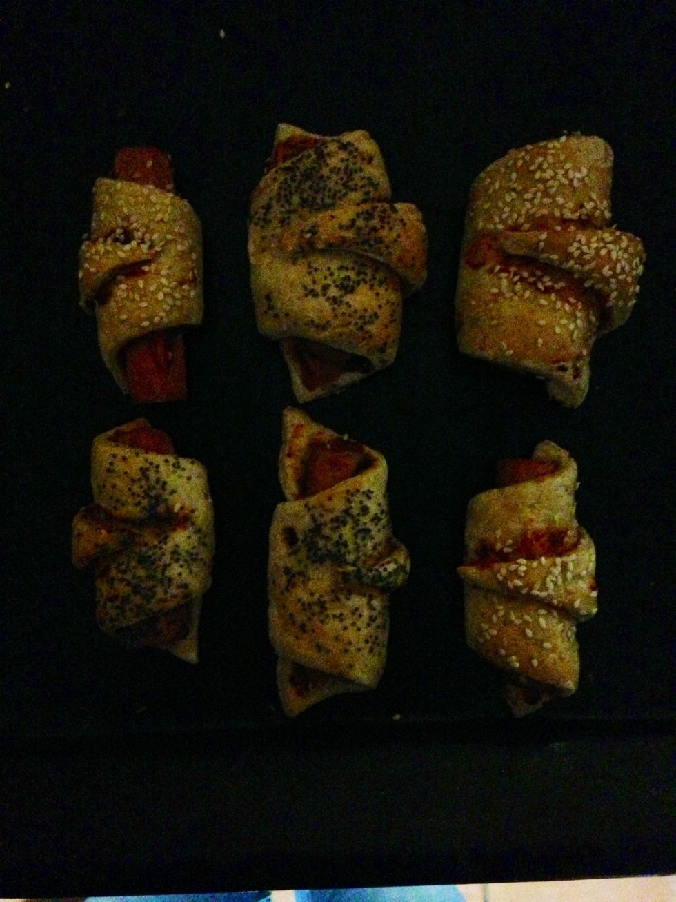 Put the sausage on and roll the dough around