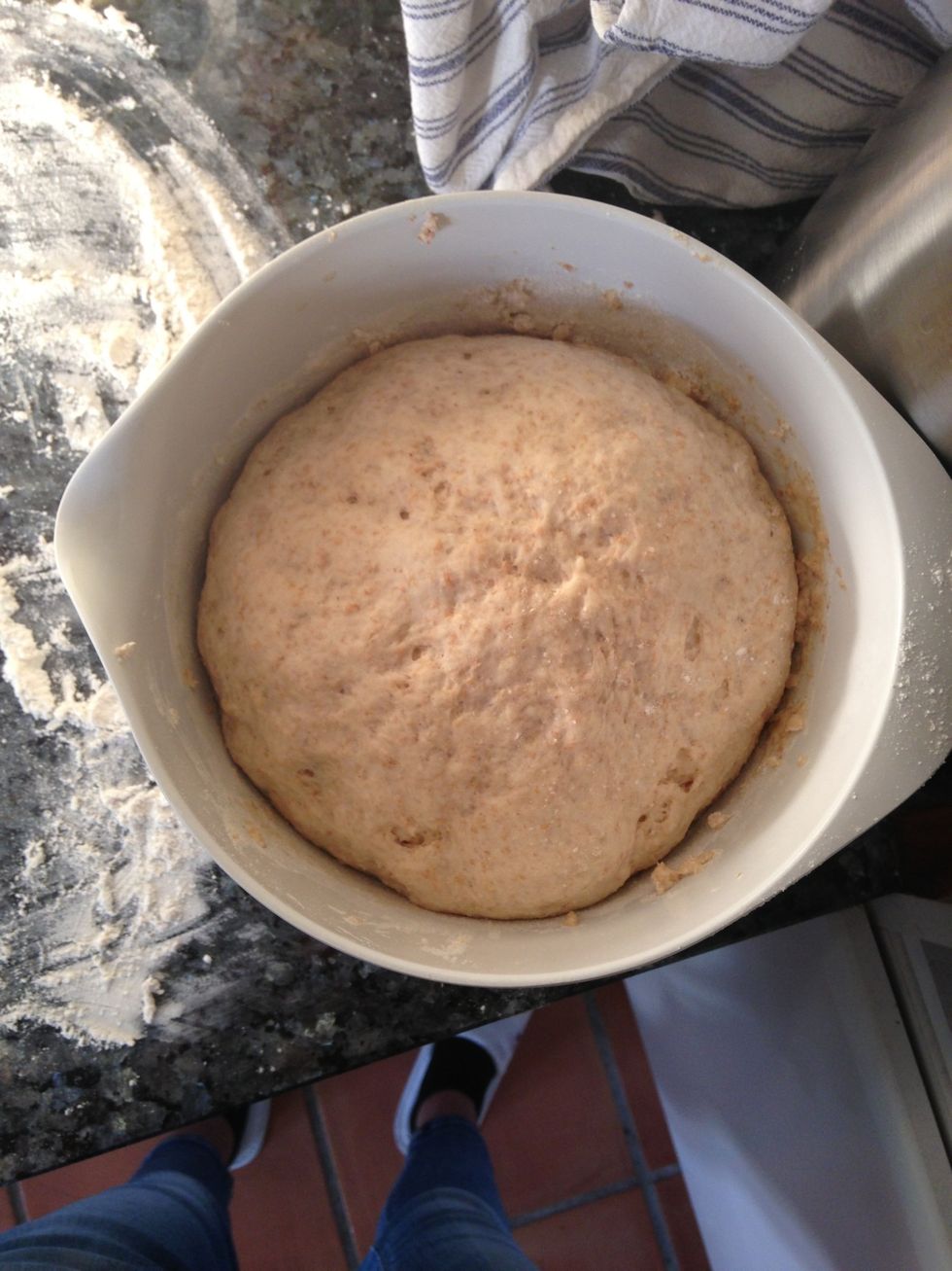 Put the dough in to the bowl again. Cower the bowl with a dishcloutch and place it a varm place for an hour.