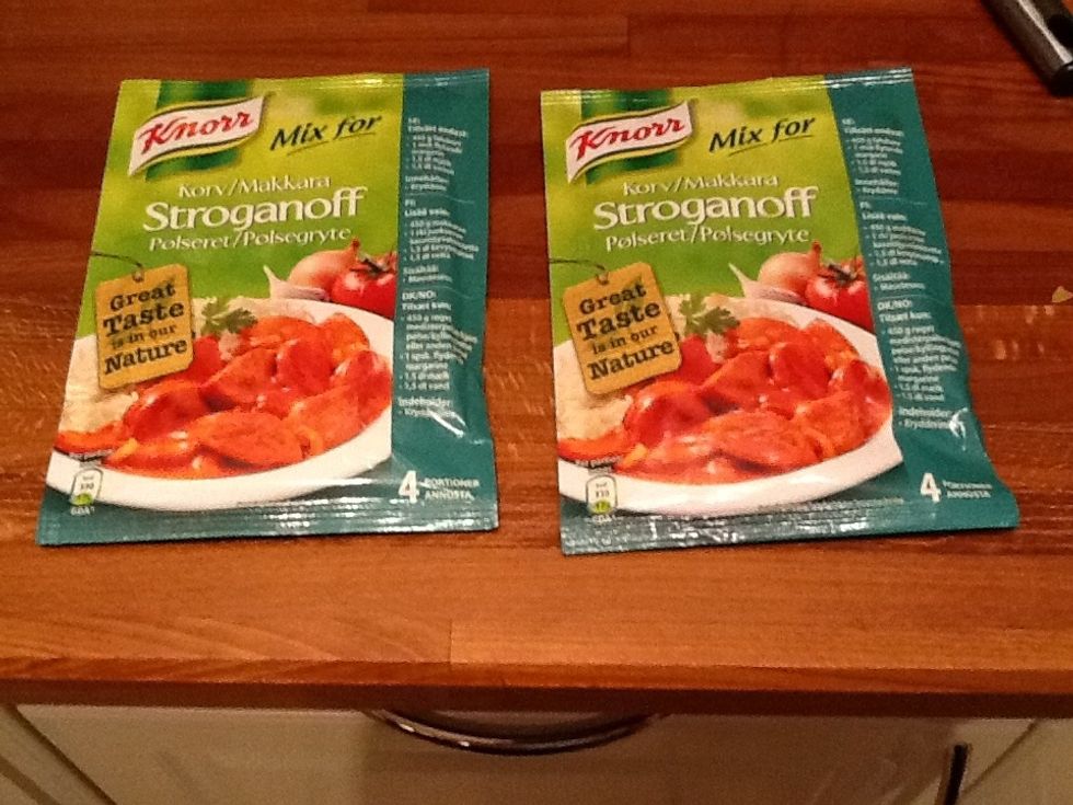 Add 3 deciliter water and 3 deciliter milk. Then add the two stroganoff mix.