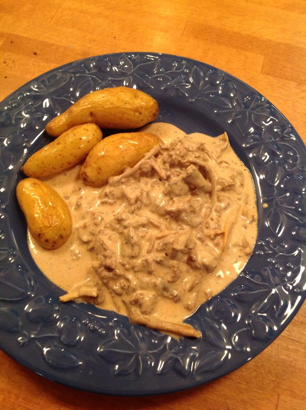 After done, serve stew with potatoes and some kind of jelly. So Scandinavian!