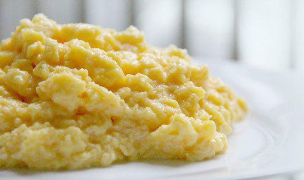 Once the bottom of the eggs is firm, stir the eggs with a spatula. Cook until it looks delicious!