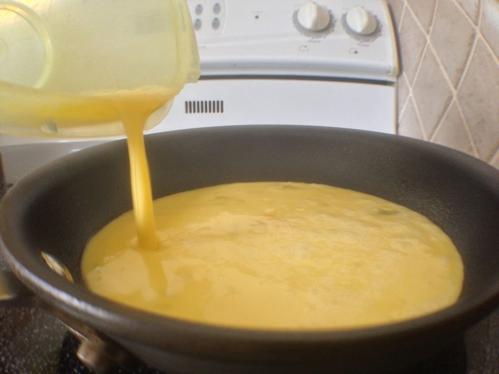 I poured some milk in mine to give my eggs some "fluff". You can use any milk you prefer. I chose whole milk. My "formula": # of eggs = # of big drops of milk.