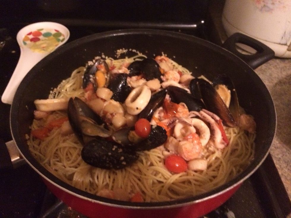 Pour seafood mix on top. Serve and enjoy.