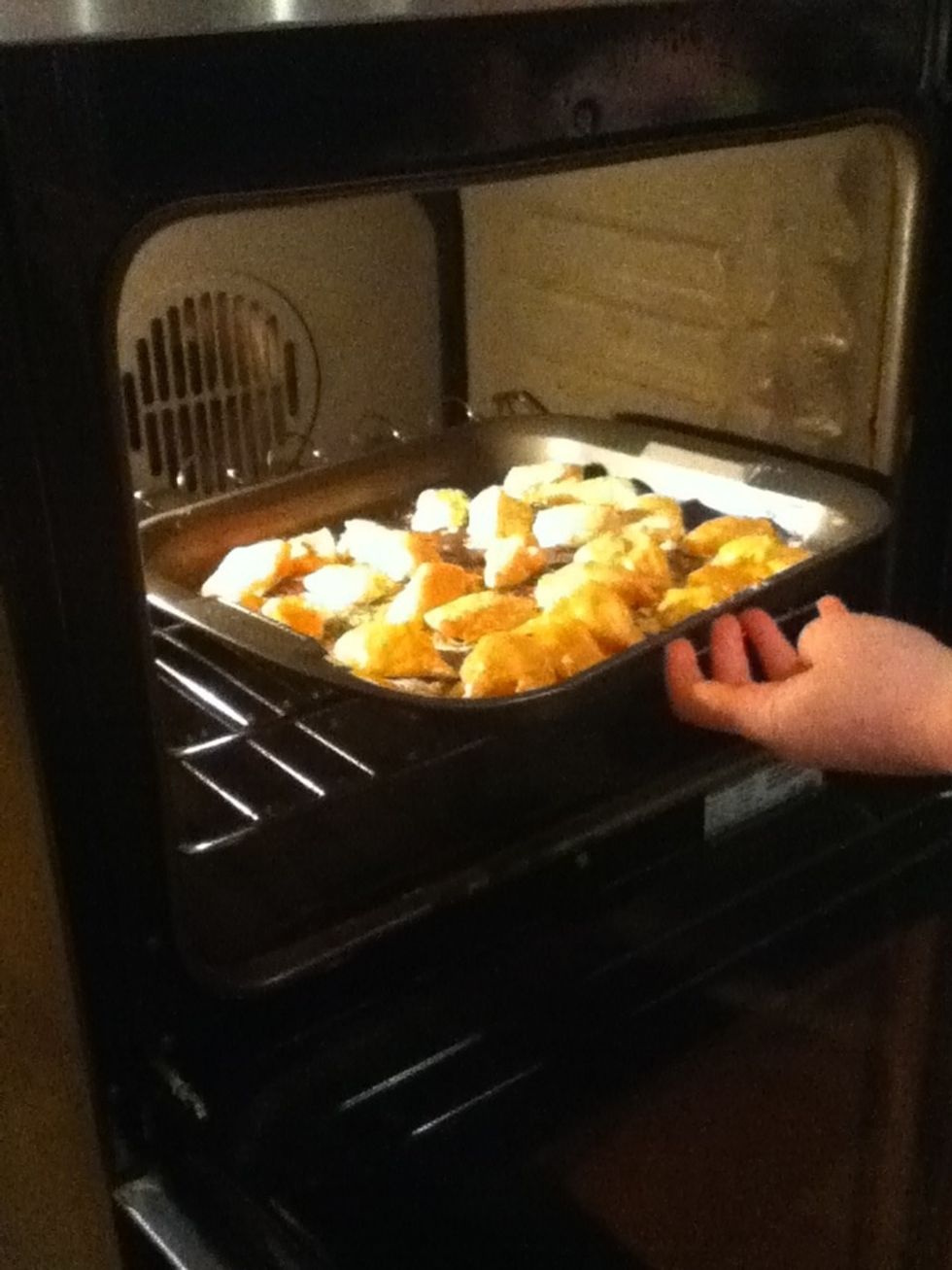 Put in your (preheated) oven for 25-30 minutes or until chicken is cooked properly