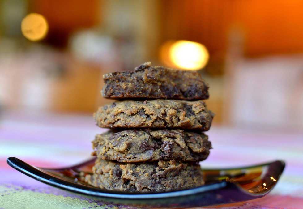 Mix in chocolate chips and bake on a parchment lined baking sheet at 375 until the top cracks, and the bottom is golden brown. :)))