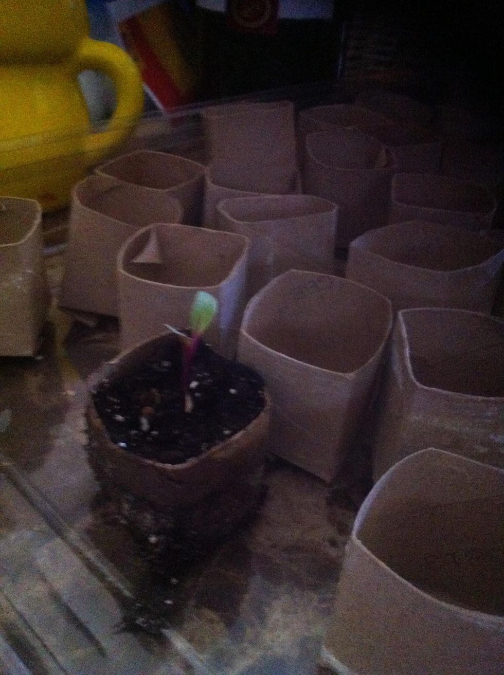 Repeat on second roll. You now have two seed starters fill with seed starter soil mix and plant your seeds. When they are ready to put into the ground you can keep the seedling in its container!
