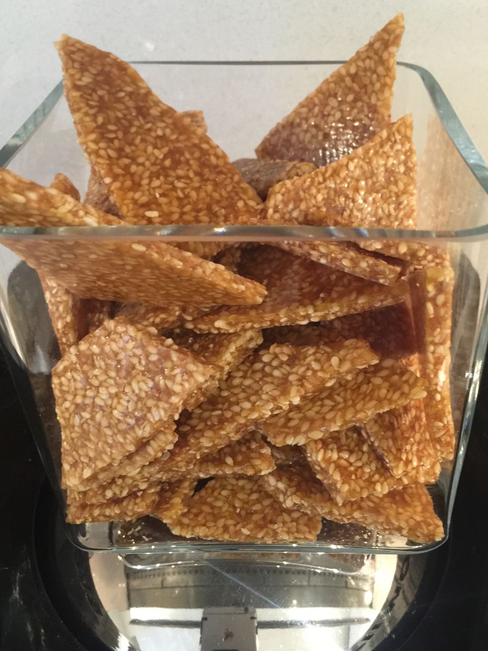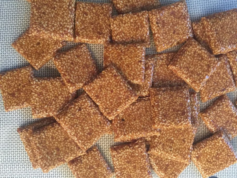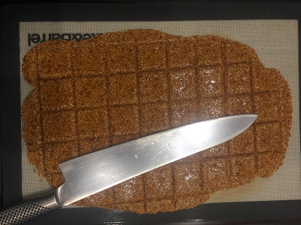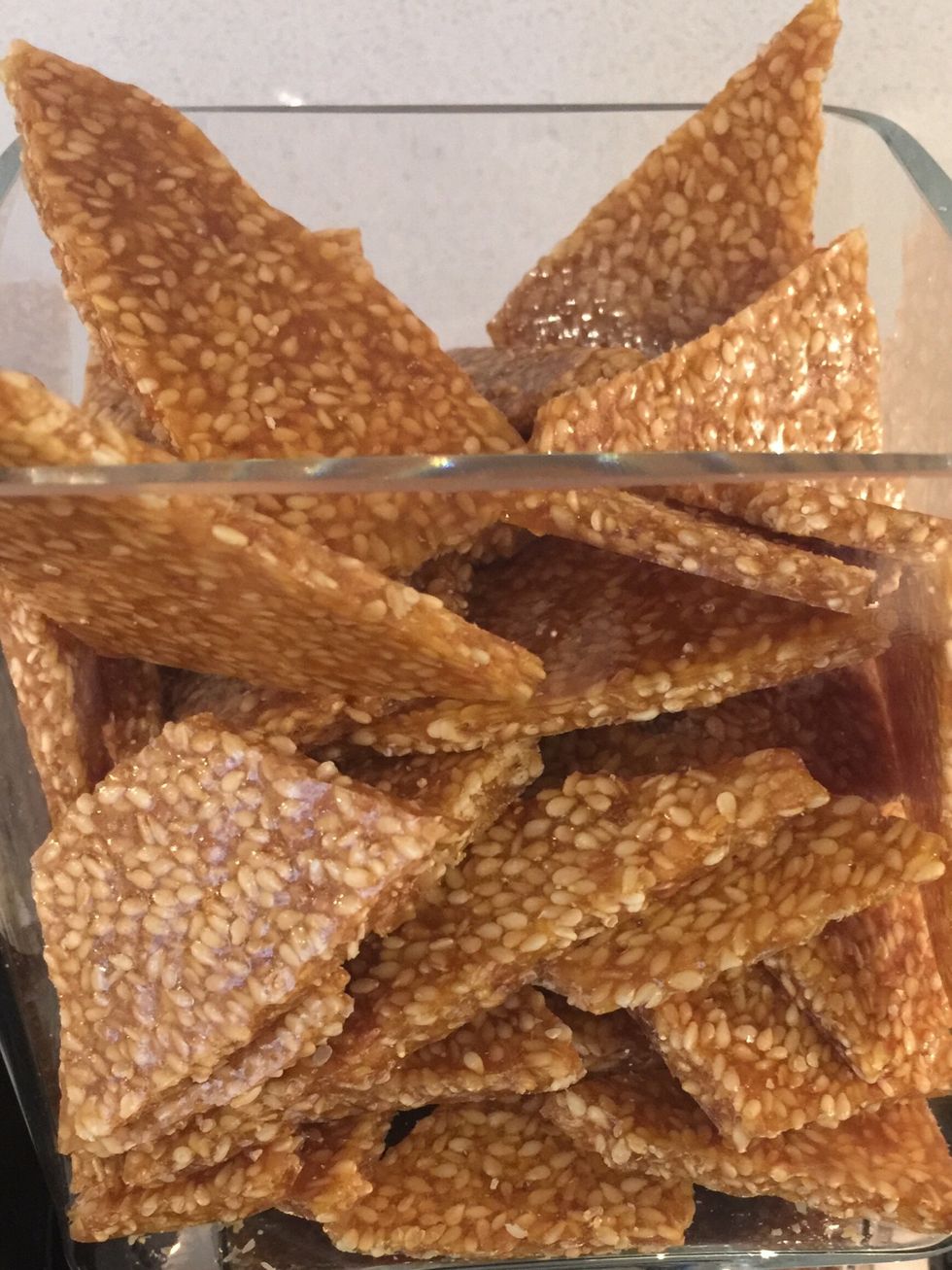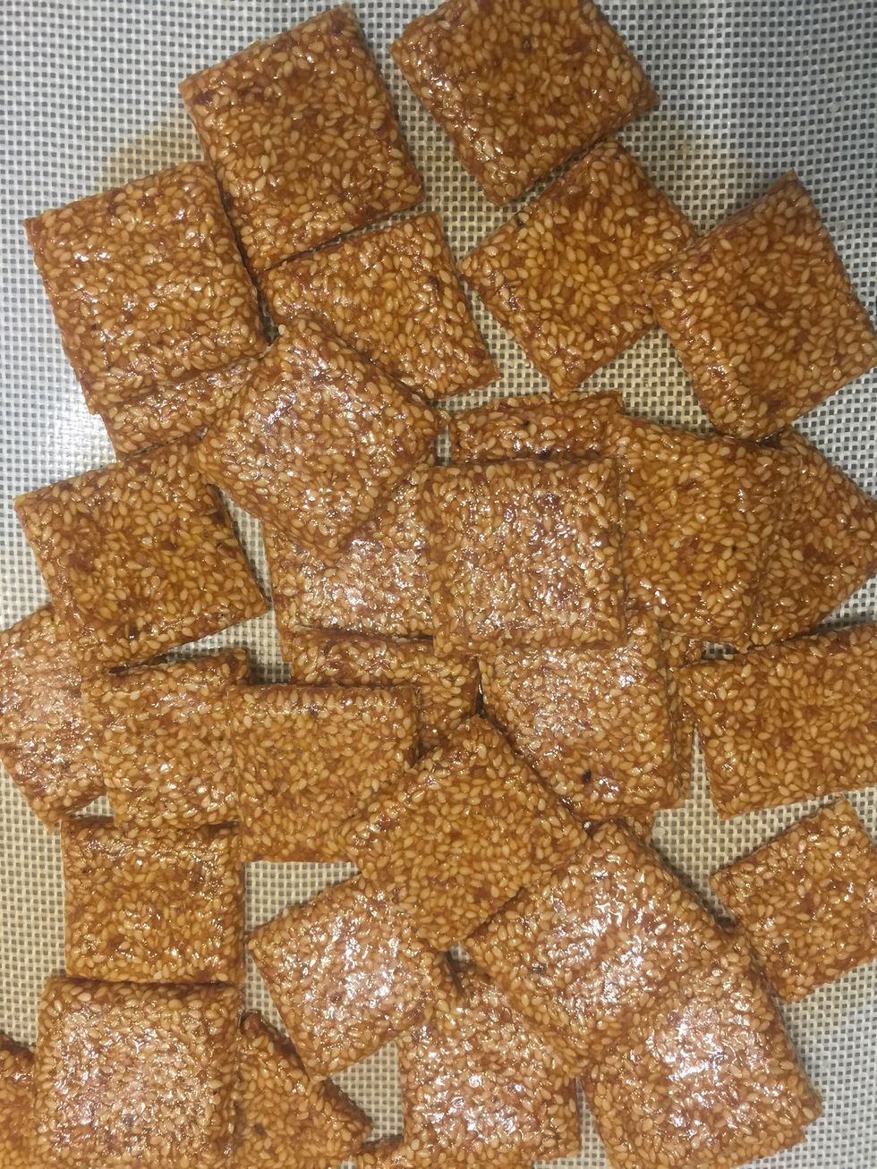In the meantime grill the sesame seeds for 3-4 mins and add over the sugar. Stir and leave to become dark Amber color.. Hard crack stage 155 C (320F). Cook on low. It will take 20 mins more or less